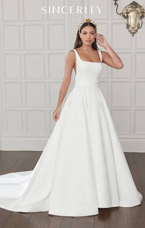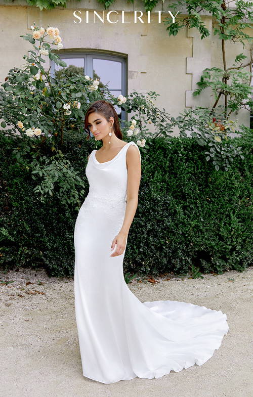 Sincerity Bridal has received countless designer awards from the bridal industry. Today, the Sincerity collection is inspired by modern romance with touches of colour. Rich draping in a wide array of dreamy fabrics accented with distinct details make Sincerity so unique. An assortment of silhouettes from tea lengths and high lows to mermaids and ball gowns are represented. Our inspiration behind the “Sincerity Bride” revolves around soft romantic personal details that make a bride feel unique on her wedding day. Prices range from £700-£1200